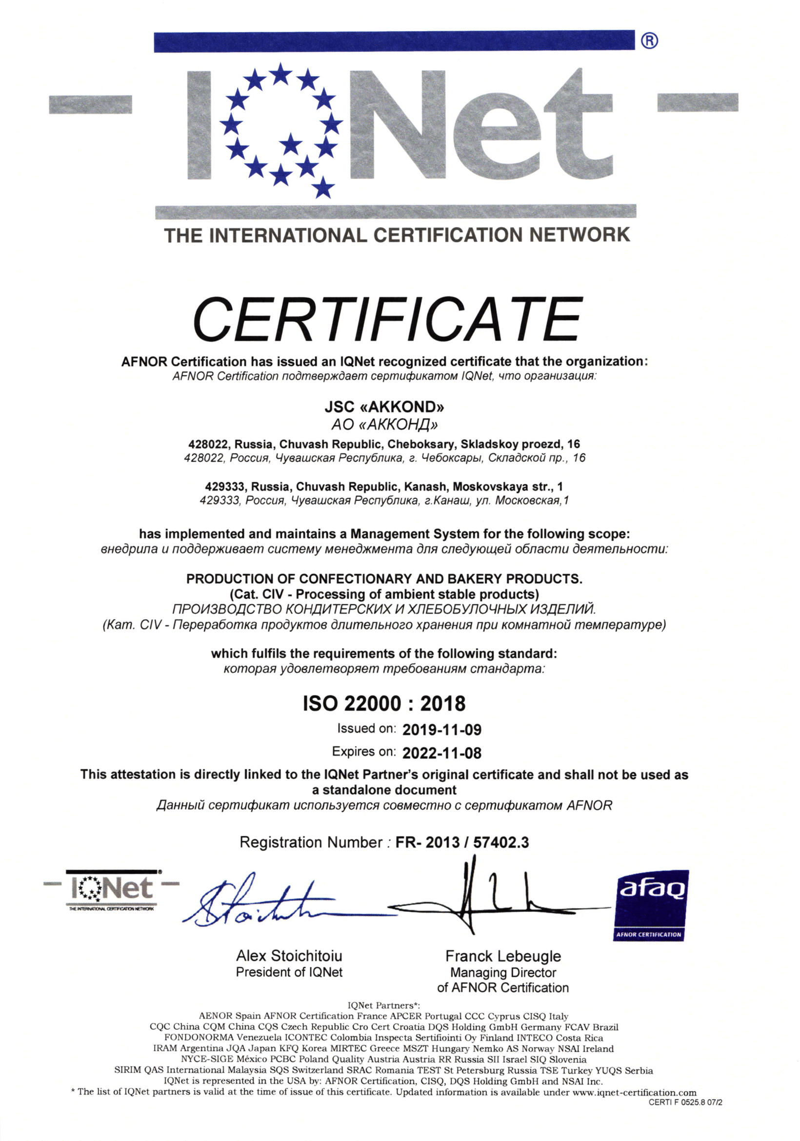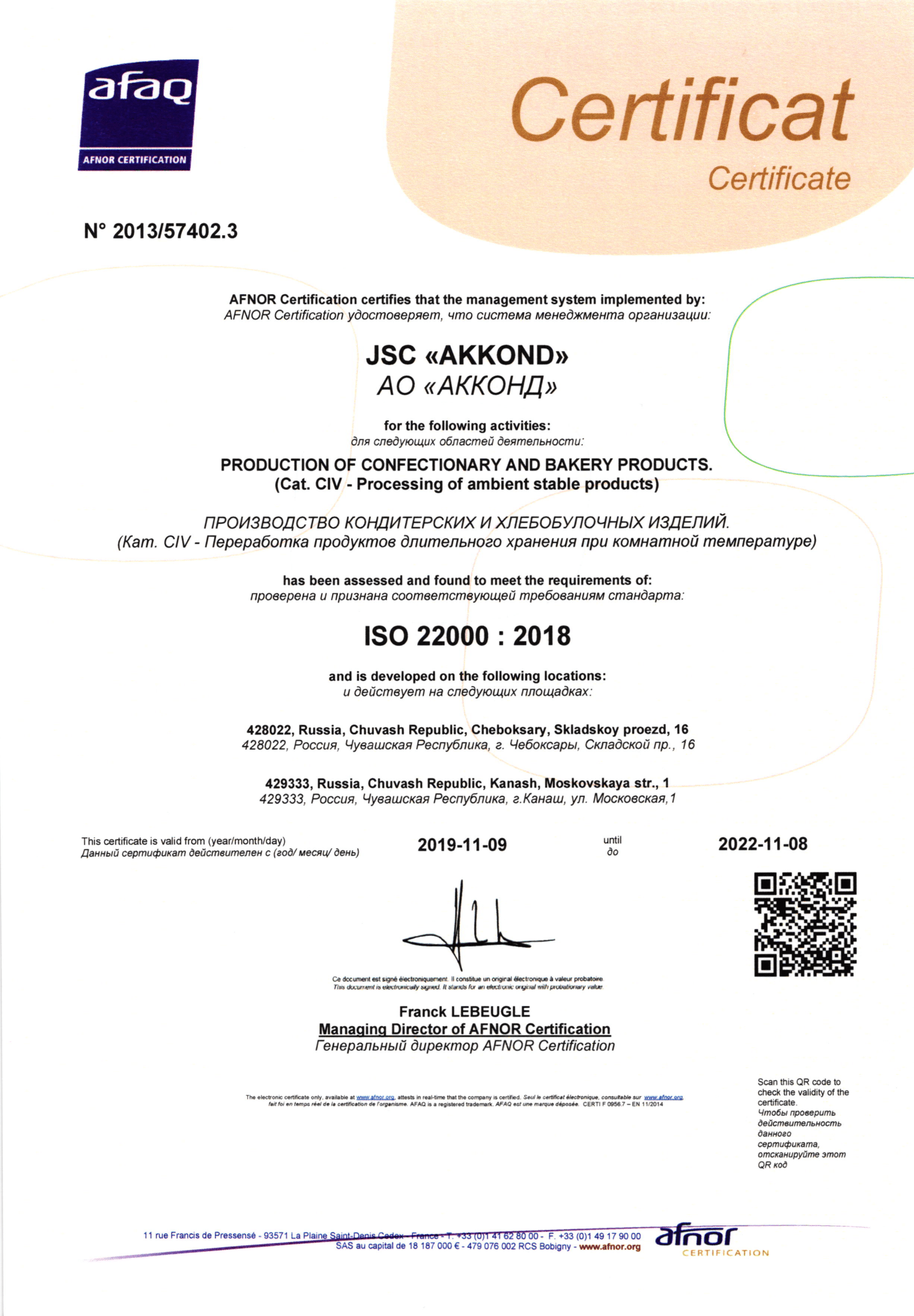 Стратегия компании в области качества – это соответствие продукции мировым стандартам. Все этапы технологического процесса на фабрике – от оценки качества сырья до конечной стадии упаковки продукции – контролируются сертифицированной лабораторией, работающей по международным системам менеджмента качества ISO 22000:2018.